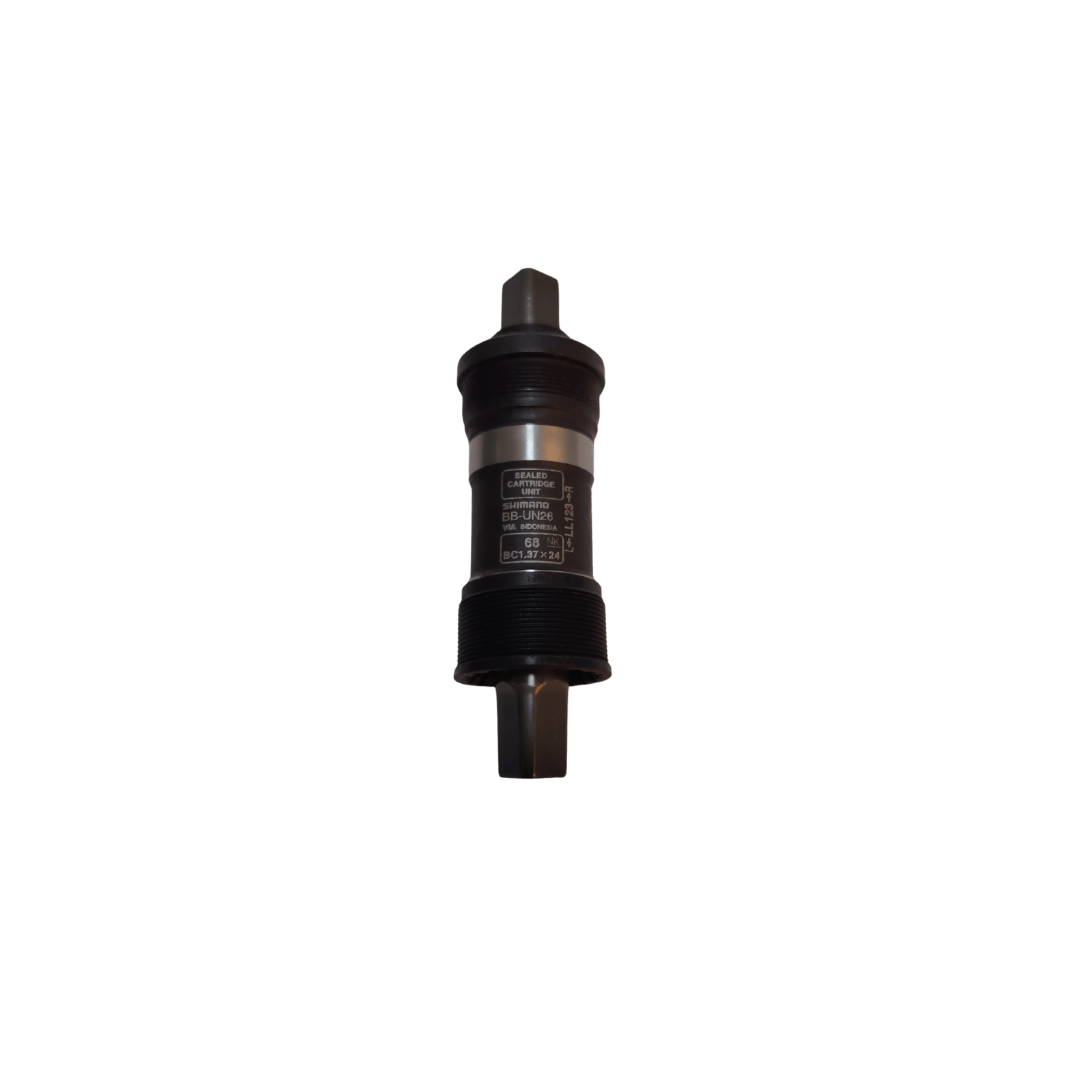 The Shimano ABBUN26B23X axle is part of a bottom bracket set (BB set) and has a length of 122.5 mm. The product is designed to ensure proper and stable transmission between the crankset and the frame, being a key component of the bicycle’s bearing system.