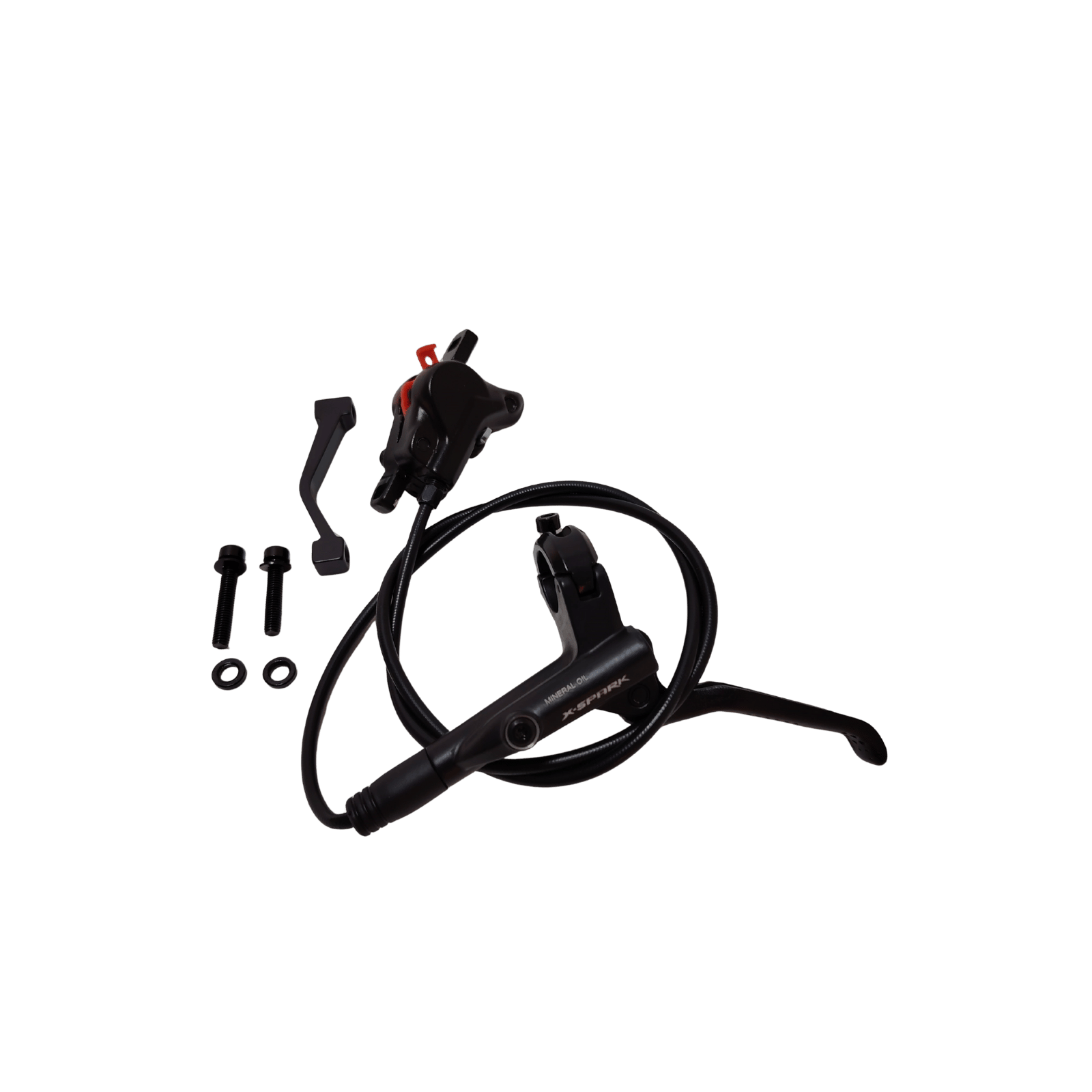 Sistem de frana hidraulica pentru fata, lungime conducta 850 mm, maneta de frana cu 2 degete pentru control precis. Include adaptor Postmount compatibil cu discuri de 180 mm. Ideala pentru MTB, cross sau biciclete electrice. Lungime conducta: 850 mm Maneta: 2 degete Adaptor: Postmount pentru disc 180 mm Utilizare: MTB, e-bike, trekking